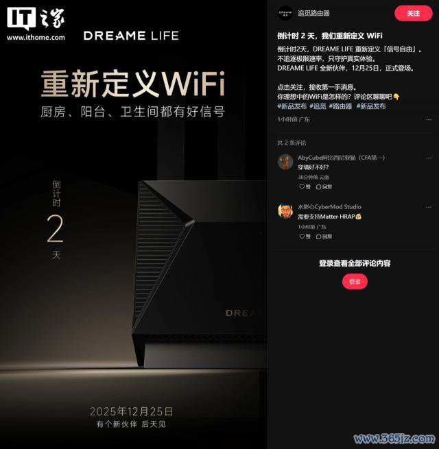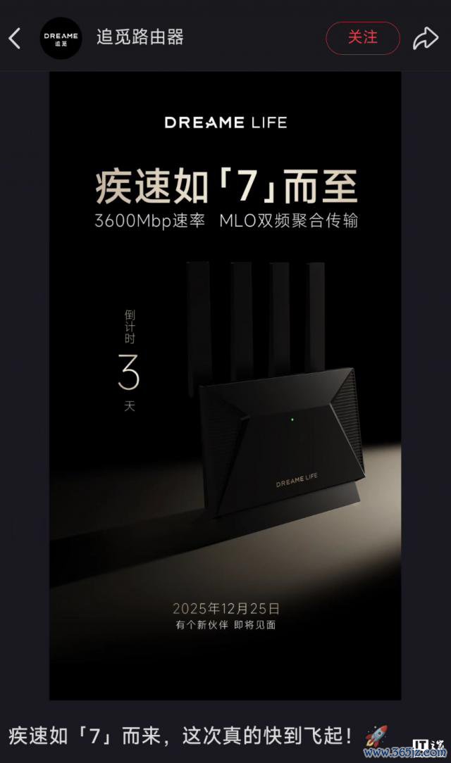 IT 之家 12 月 23 日音讯,追觅官方今天在小红书平台发文,预热品牌首款路由器居品,12 月 25 日发布。